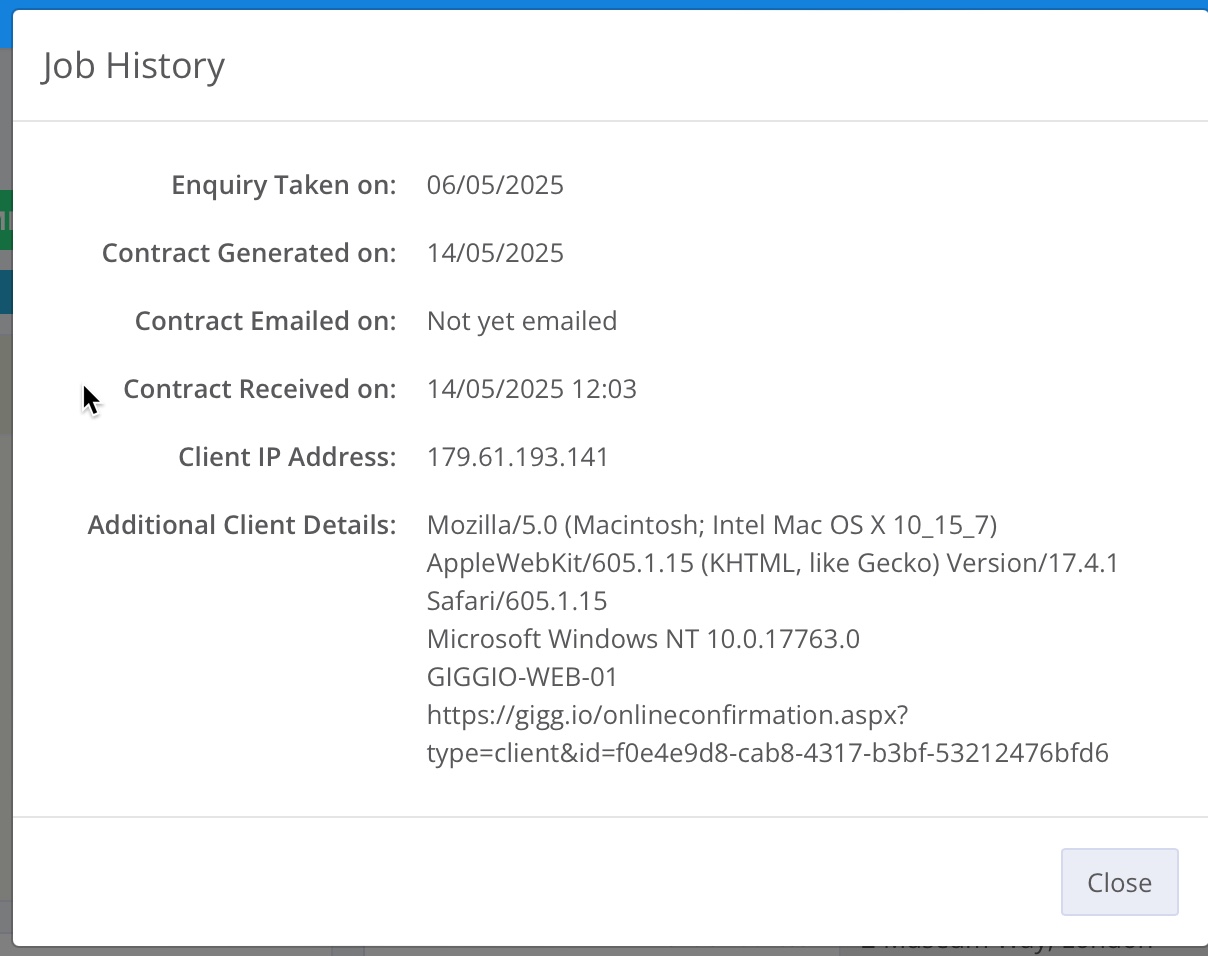This will also show in Giggio, if you click on the Event Status Button, along with the details of the device that was used to confirm the booking:
