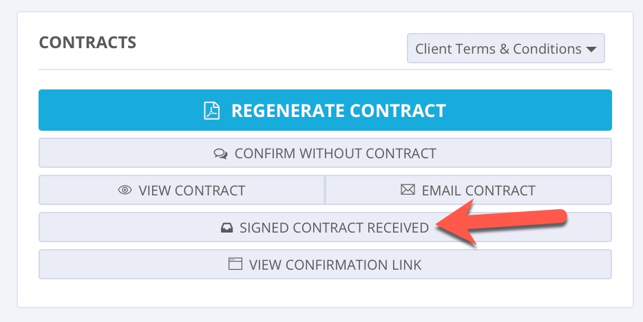 If your client signs the pdf contract with a physical signature, and sends it back to you, you can click 'Signed Contract Received' on the Event Page: